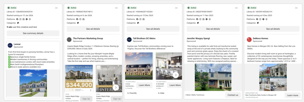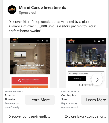 Include essential information in the creative itself. Price, bedrooms, bathrooms, and neighborhood should be visible without clicking. Buyers scroll quickly and won’t click without knowing basics.